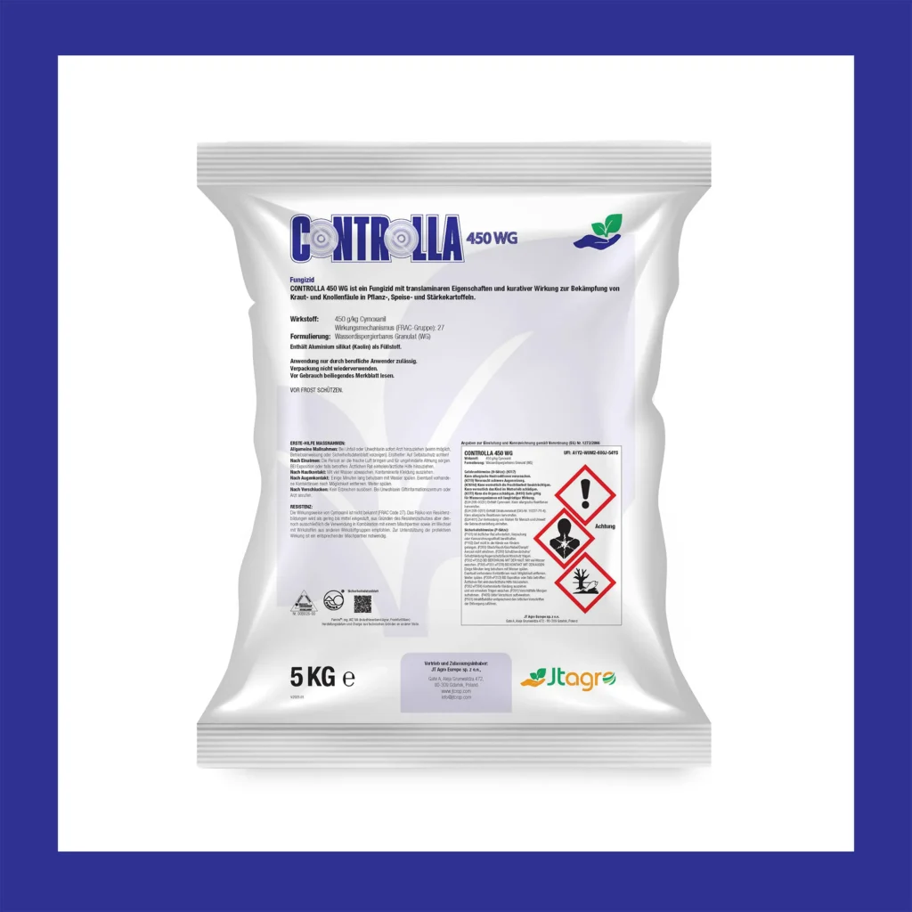 CONTROLLA 450 WG is a fungicide with translaminar properties and curative effects for combating blight in seed, table, and starch potatoes.