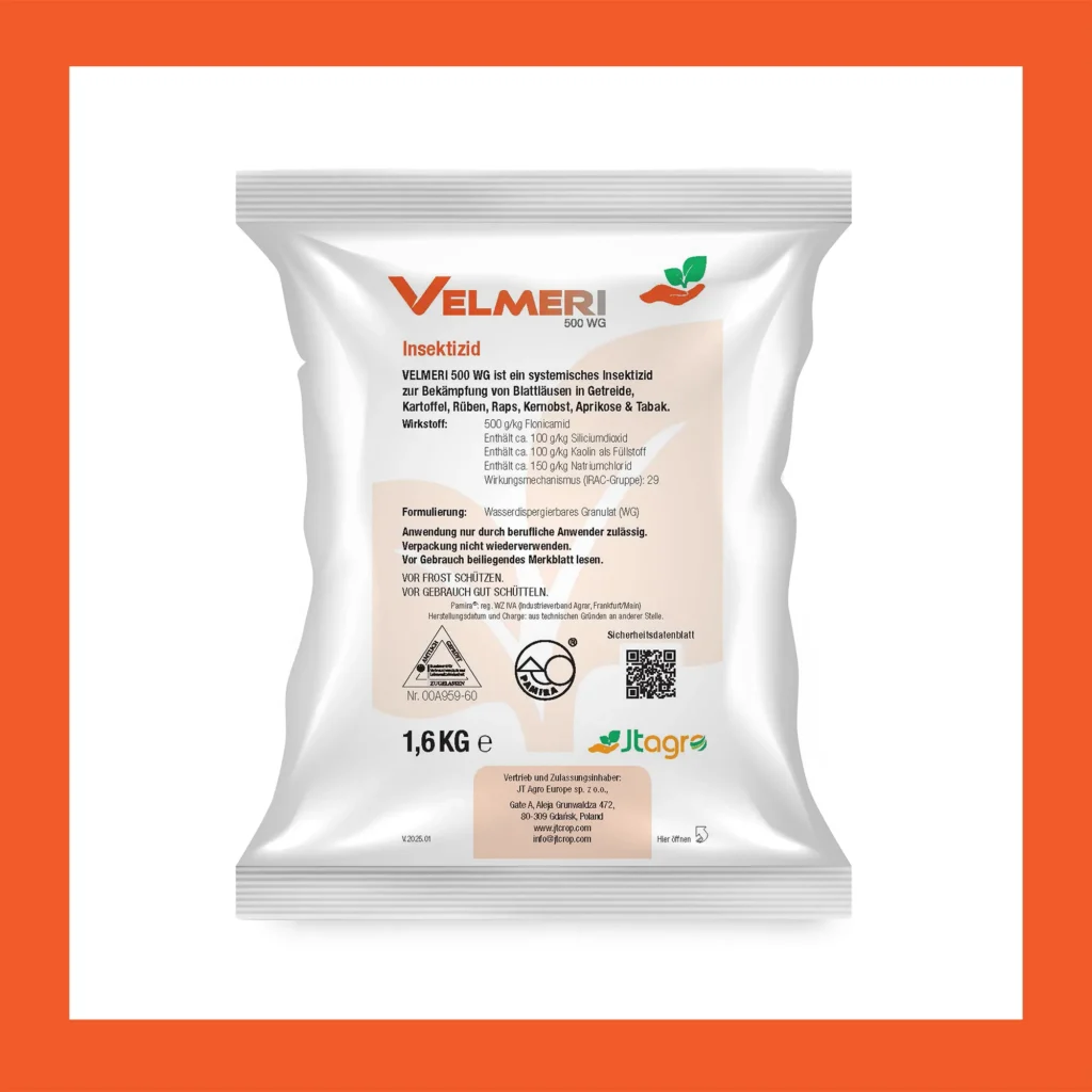 VELMERI 500 WG is a systemic insecticide for the control of aphids in cereals, potatoes, beets, rapeseed, pome fruit, apricots and tobacco.